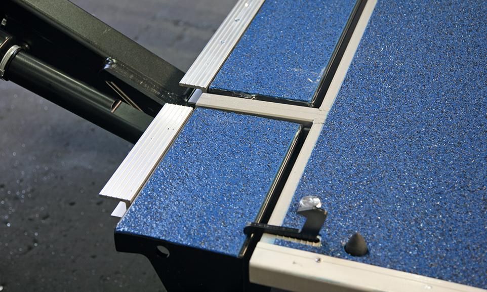 De Ret/HydFalt platformen zijn ofwel uitgerust met een aluminium oprijbrug of met een klapbrug inclusief draagarmstops (zie hierboven). Optioneel kan deze worden gecoat met geluiddempende SilentGrip.